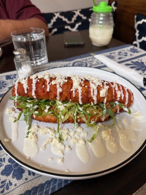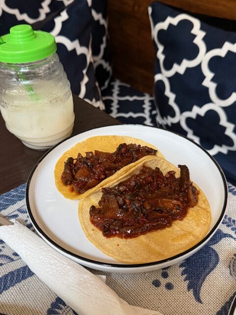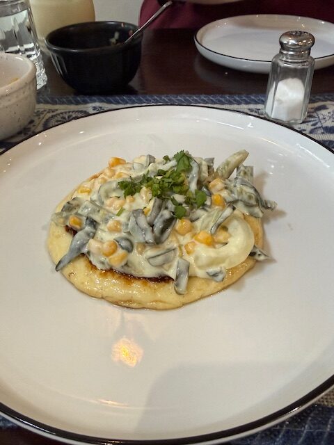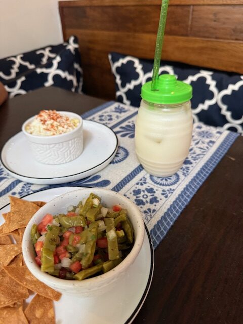 My friend Paul joined me as we started off with their home-made Horchata and the very unique and delicious Panela Asada that features grilled Panela cheese that is melted and topped with a choice of fillings. We had the rajas with corn tortillas. Next was the Ensalada de nopales (cactus salad) and the Esquites (creamy Mexican white corn) which rounded out the appetizers.