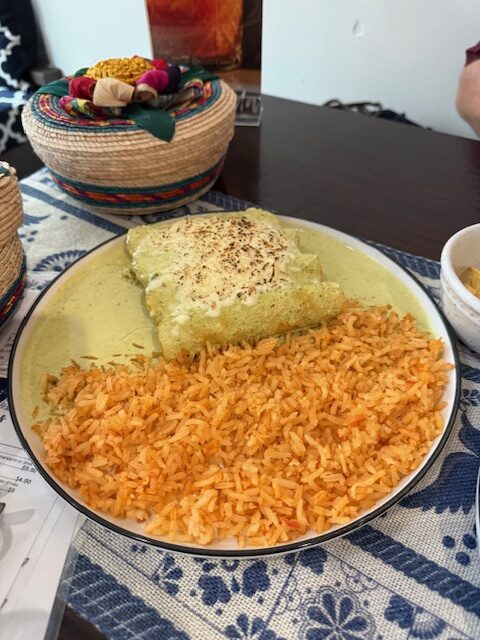 The Enchiladas stuffed with chicken with green sauce with rice on the side were very good; as was the Tacos topped with garlic mushrooms; we also had some tacos with the Mexican style chicken.