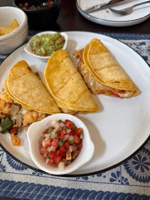 Pambazo with Mexican style chicken was very good, they bring in this special bread from Guadalajara and then bake it here with the filling and sauce; definitely worth trying. We also had the Tacos Gobernador that are made with shrimp and it is another specialty from back home. They also make a couple variations of Tamales, we had the ones with chicken.