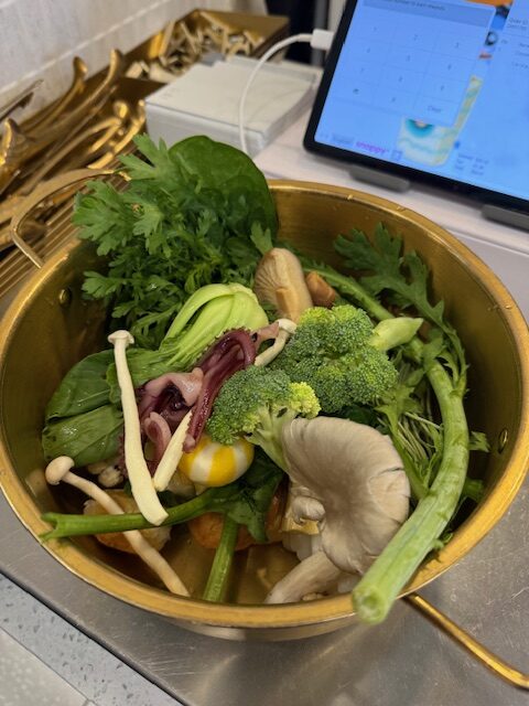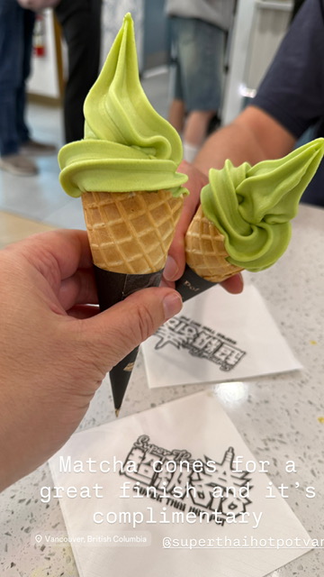 To finish the hot pot experience they serve everyone a complimentary soft serve ice cream cone and the night we were there it was Matcha which we both love.