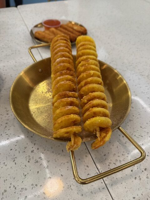 We also got some of their fresh iced teas, I had the Lemon Green tea while Lawrence had the Oolong tea. We also chose some snacks as I hadn’t done so before. The Fish Sticks came with a sweet plum sauce and we also got the Tornado Potato cause it looked so fun and tasted great too.