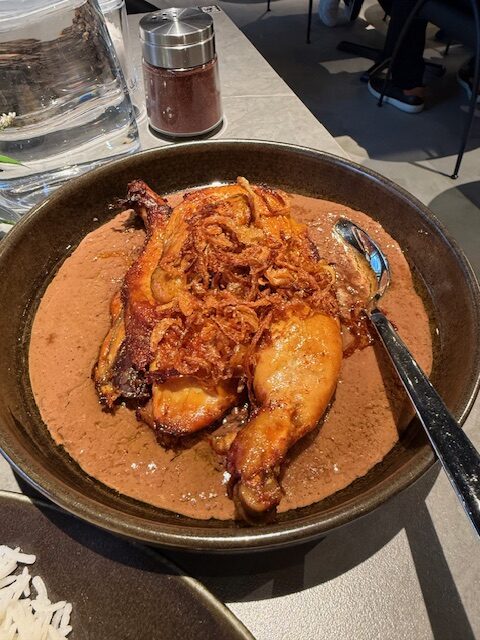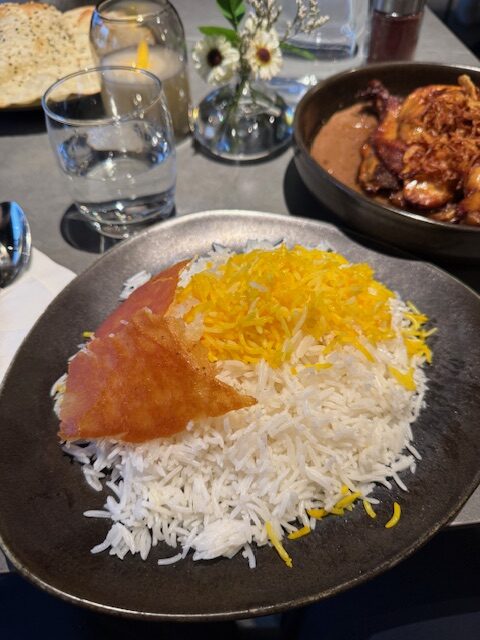 The next day I drove to West Vancouver for dinner at Asur Kitchen (1746 Marine Drive, West Vancouver) that specializes in Persian cuisine. Here I had a Green salad then the Fesenjoon, a flavorful stew made with ground walnuts and pomegranate molasses, served with half of a golden-fried Cornish chicken and saffron rice.