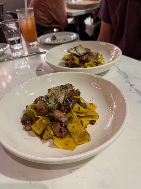 The pasta dish created by Chef James was the Ossobucco alla Milanese with Saffron Pappardelle and Tartufo Nero and featured a delicious Veal Osso Bucco smoked then slowly braised in white wine to make a Ragu. They add Guancale, fresh local Chanterelle Mushrooms served over Saffron stained Pappardelle noodles and finish with shavings of Fresh Tartufo Nero (black Truffle) imported from Umbria.