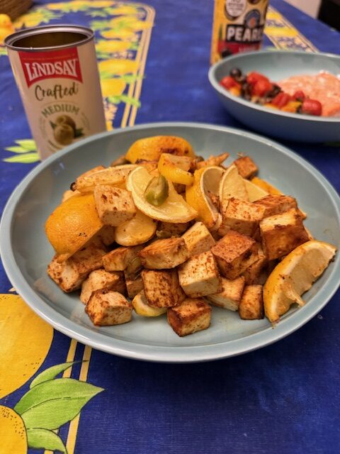 Tofu with olives and lemon