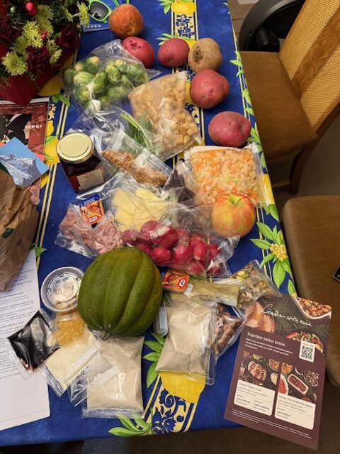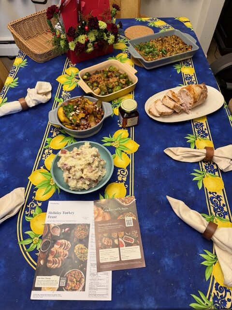 Roasted Turkey dinner for 6 with all the fixin’s that included garlic mashed potatoes, oven roasted squash, beets and radishes, stuffing, Brussel sprouts, gravy and cranberry sauce. They also offer a larger kit to feed 12 people.