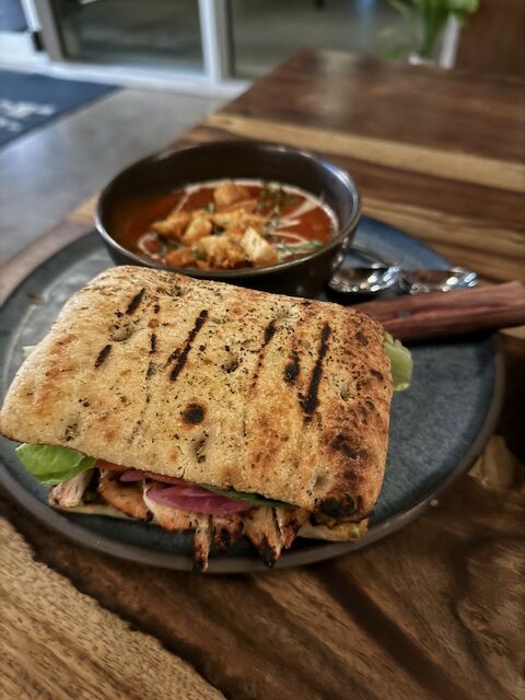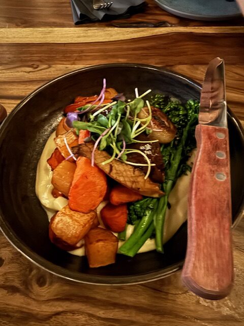 For dinner we visited House of Lager (37010 Village Cres, Squamish) and had some zero proof beers along with these tasty dishes Beet and goat cheese salad, Albacore tuna tataki, Focaccia, Braised Aaa beef short rib, Maple glazed Brussel sprouts and Avocado and edamame smash with added herb grilled chicken with side of roasted red pepper soup.