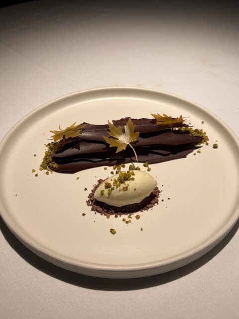 Then it was on to dessert and both were good, though the favourite was the Valrhona Pistachio. We also had the Houjicha Cheesecake.