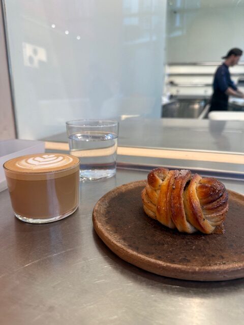 Most people know that Dope Bakehouse (650 Mountain Hwy, North Vancouver) was a spinoff from Nemesis Coffee as it’s bakery and they recently opened a stand-alone location in North Van that’s close to Highway 1. I visited where I got to sit and watch their bakers in action while enjoying a Cardamom bun and Espresso with milk.