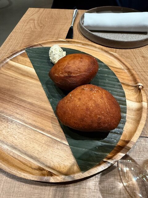 Buns & Butter and this was so unique as the buns were banana and cumin with toasted coconut and chili butter on the side. The other bread item was the popular Chili Cheese Garlic Naan one that every table is going to want to share.