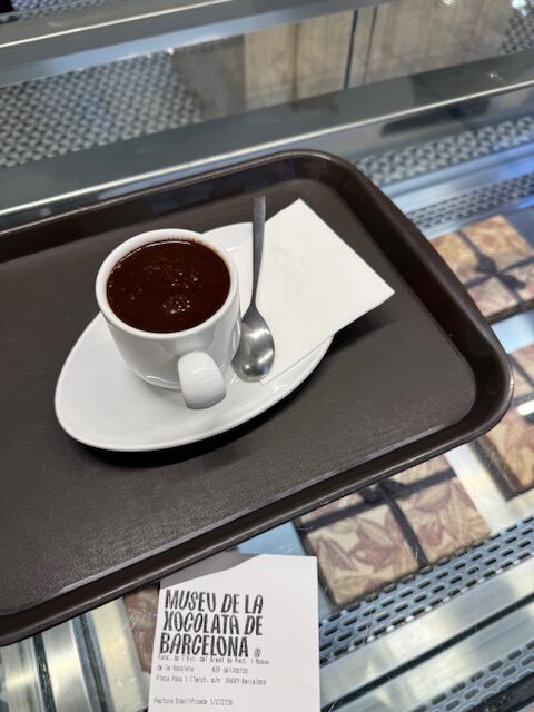 Then nearby, I visited Museu de la co plata de Barcelona @museuxocolata this museum explores the craftsmanship and historical significance of silverwork in the region. Exhibits contextualize precious metal artistry within Catalonia’s economic and religious history, offering insight into decorative techniques, liturgical objects, and evolving design trends. It provides a quieter, more specialized cultural experience beyond the city’s headline attractions. Afterwards I visited their on-site café for an indulgent drink of liquid dark chocolate. A few days later Lawrence joined me for another visit for espressos and treats that included an incredible Chocolate Pistachio roll.