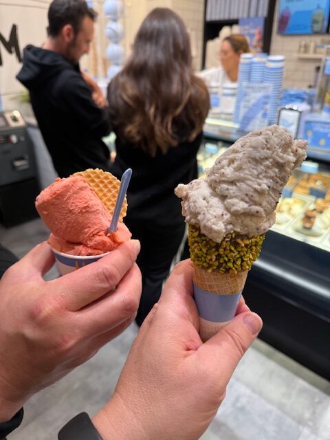 For dessert nearby we visited Holy Madre Gelateria @holymadregelateria that emphasizes natural ingredients and vivid flavors. Seasonal fruit varieties often sit alongside indulgent options like pistachio or dulce de leche. Texture is key: dense yet smooth, reflecting traditional Italian churning techniques. I had their Stracciatella Gelato on a cone.