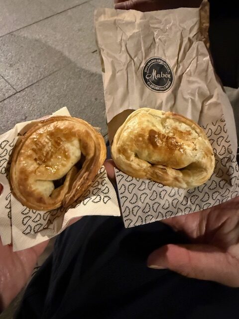Empanadas Malvon @empanadasmalvon  Part of a growing Argentine empanada concept, it offers a structured menu of baked pastries filled with classic combinations—beef, ham and cheese, spinach, and more inventive options. The format is efficient, making it ideal for takeaway while maintaining product consistency. The bakery was filled with Argentinian empanadas and we had the Pollo as well as the Caprese.