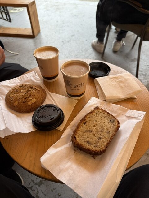 Over the next few days, I drove around the city between Mount Pleasant and the Fairview neighbourhoods to check out some recently opened cafes. Started off at Sula Cafe (260 E 5th Avenue) the tiny cafe is a beauty inside and fits the theme of an Indian cafe with lots of food offerings, they also have South Indian filter coffee made with @alai.coffee and a range of Chai drinks. We had their Classic masala chai along with some snacks that included a Cardamom loaf and an Almond cookie.
