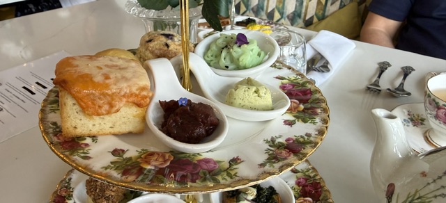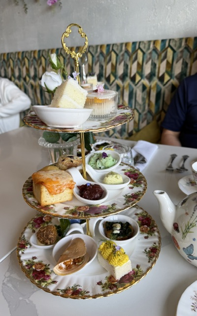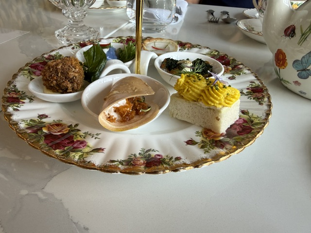 We were then each served a 3-tiered tray featuring tasty savouries on the bottom plate, fresh scones in the middle and sweets on top.