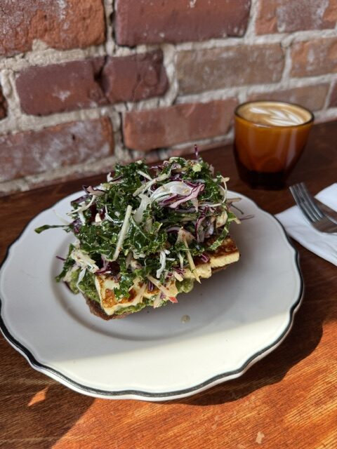 The next day I took an Uber over to the Saint-Henri neighbourhood to do some exploring but first stood in line outside of Cafe September and once inside had a delicious breakfast having the signature Halloumi toast and a Cortado.