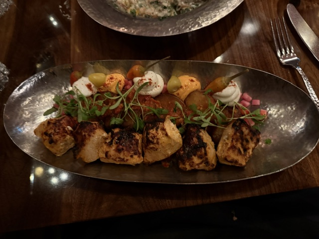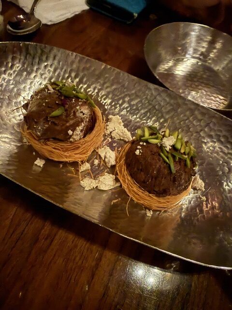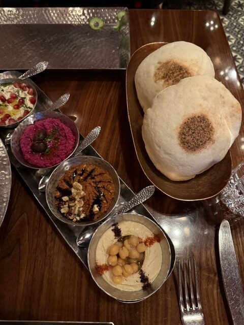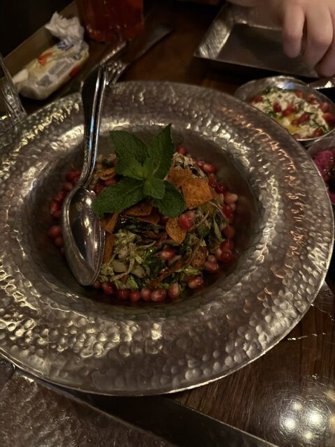 The next night one of my local friends joined me in the Outremont neighbourhood at one of my favourite restaurants that I discovered on my previous trip. Here we were at Damas, a high end Syrian restaurant for a tasty dinner; Tara and I each had the Shai Glace mocktails to start. We shared the Metze platter with 4 dips and the best pita along with a Fattoush salad.